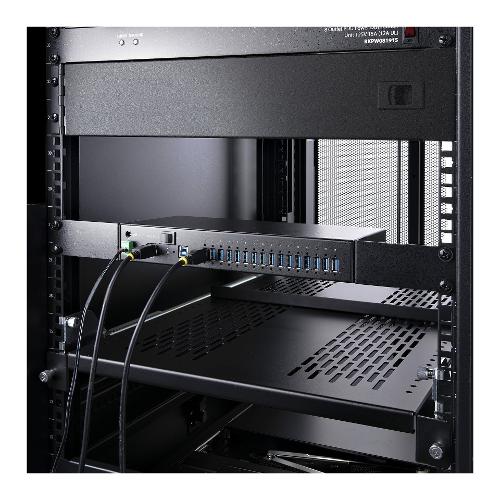 L'hub industriale USB 5Gbps a 16 porte con adattatore di alimentazione è dotato di 16 porte USB-A downstream. La robusta struttura interamente in metallo è adatta all'uso in applicazioni industriali a rack. La protezione ESD (Electrostatic Discharge) di livello 4 protegge da scariche di 15kV in aria e 8kV a contatto. L'hub è dotato di uno switch host a 2 porte che consente agli utenti di passare da un dispositivo host all'altro.