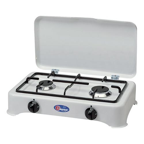 Cucina a gas naturale a 2 fuochi, bruciatori in lega Pyral N2, con coperchio colorato versione Ibiza, spartifiamma smaltati, griglia smaltata.