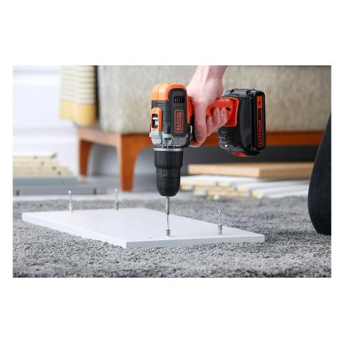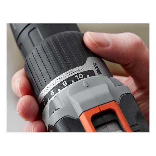 Il trapano avvitatore a percussione 18v con doppia velocità è estremamente compatto e comodo da usare grazie alla sua impugnatura ergonomica. La frizione a 11 posizioni garantisce un controllo ottimale per la fornitura di molteplici superfici come legno, metallo e plastica. La luce a led illumina l'area di lavoro durante l'utilizzo. Il trapano avvitatore a percussione 18v è parte della gamma black+decker powerconnect. Un controllo preciso delle attività di foratura e avvitatura grazie al grilletto progressivo.