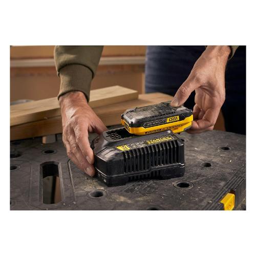 Caricabatteria rapido da 4a che compatibile con tutte le batterie v20 di stanley fatmax. Tempo di ricarica medio per una batteria di 2 ah in circa 30 minuti