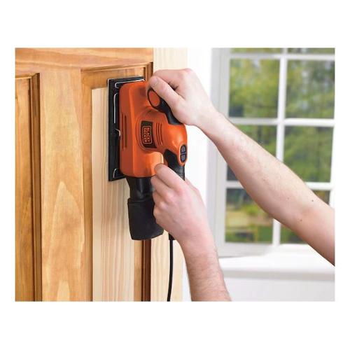 Ideale per un utilizzo su superfici verticali quali porte e muri, per operazioni di levigatura leggera e media. Sistema di aspirazione della polvere integrato con sacchetto raccogli polvere per avere il banco da lavoro sempre pulito, maggior flessibilità e facilità d'uso. Il design compatto permette una maggior prossimità alla superficie di lavoro per un miglior controllo.