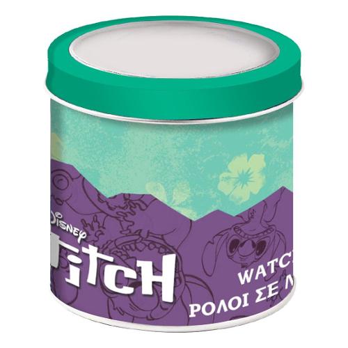 Orologio Disney Stitch con meccanismo analogico in una scatola regalo in metallo, adatto ai bambini per imparare l'ora nel modo più semplice
