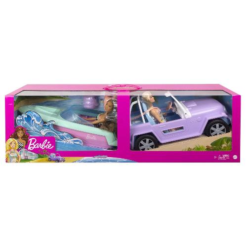 Crea le tue avventure dalla terra al mare con questo set regalo di barbie® che include due bambole barbie® con abiti e accessori alla moda, un fuoristrada sportivo e una barca che galleggia sull'acqua! Con una carrozzeria viola pastello, dettagli argentati, ruote che girano e pneumatici da fuoristrada per un gioco realistico, non dovrai far altro che allacciare le cinture a barbie® e alla sua migliore amica e portarle a fare un giro. Una volta arrivate a destinazione, fai indossare a barbie® e alla sua migliore amica il giubbotto salvagente e lanciati in acqua con un motoscafo sportivo, perfetto per le avventure in spiaggia. Con due fantastici veicoli e due bambole con abiti e accessori alla moda, questo set regalo ispira infinite possibilità di narrazione per bambini e bambine dai 3 ai 7 anni. Le bambole non possono reggersi in piedi da sole.