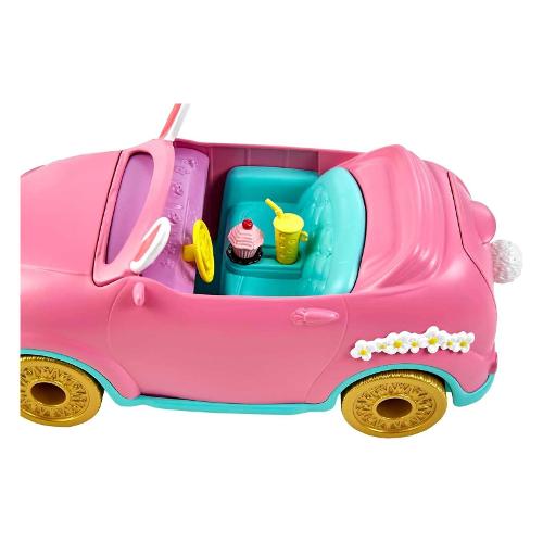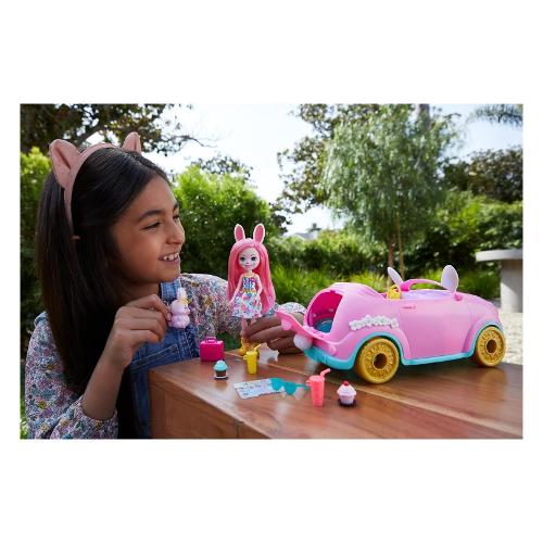 Salta nella conigliomobile enchantimals! Con le ruote che girano, il bagagliaio che si apre e gli adorabili dettagli da coniglietto, questa cabrio è nata per vivere tante avventure on the road. La bambola bree il coniglietto (circa 15 cm) e il suo amichetto twist sono pronti a saltare in macchina con la valigia, gli occhiali da sole, la mappa, le borracce e molto altro ancora! I bambini adoreranno creare avventure con il set della conigliomobile enchantimals da 10 pezzi. Dagli una spinta per dare inizio al divertimento! Colori e decorazioni possono variare.