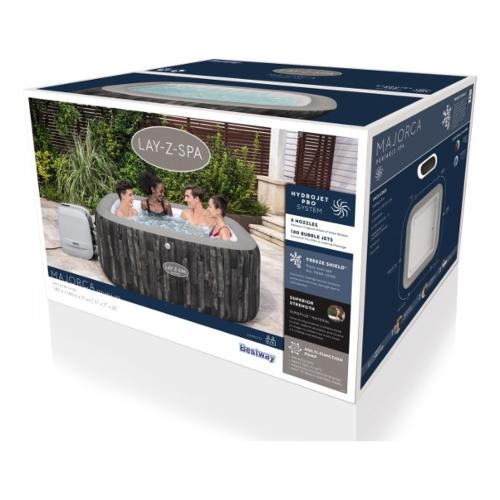 Vuoi concederti in qualsiasi momento una sessione di relax in una bella vasca idromassaggio? Scopri la spa gonfiabile majorca hydrojet pro lay-z-spa di bestway. Con dimensioni di 180 x 180 x 71 cm, puoi installarlo su una parte della tua terrazza, nel tuo giardino o anche in una stanza della tua casa. Assicuratevi solo che il pavimento su cui verrà appoggiato possa sostenere l'attrezzatura piena d'acqua. Dispone di 140 getti d'aria che vi permetteranno di rilassarvi in ​​una piacevole vasca idromassaggio. È possibile riscaldare l'acqua della spa fino a 40°c. Le migliaia di piccole bollicine diffuse ti daranno una sensazione di abbandono e di evasione che ti farà dimenticare tutte le tue preoccupazioni. Relax. Chiudi gli occhi. E godetevi questo momento di relax. Le bolle che si liberano dal fondo della spa sono ovviamente riscaldate. Ti massaggiano molto delicatamente. I tuoi muscoli si rilassano. Ti rilasserai. Se vi concedete una seduta in spa dopo il lavoro, dormirete sicuramente meglio. Oltre ai suoi airjets, la lay-z-spa® majorca hydrojet pro™ è dotata anche di 8 idrogetti. In questo modo si ottiene un massaggio più vigoroso, perfetto per alleviare i dolori muscolari. È possibile modificare la direzione dei getti d'acqua se si desidera trattare una zona specifica del corpo. Anche l'intensità dei getti d'acqua può essere regolata in base alle proprie preferenze. È possibile utilizzare contemporaneamente sia airjets che hydrojets oppure scegliere un solo sistema di massaggio. La scelta è tua. Per semplificarne l'utilizzo, il produttore equipaggia questa spa con una pompa di filtrazione dotata di pannello di controllo touch. In questo modo potrai gestire comodamente i tuoi dispositivi per il benessere con la punta delle tue dita. Da qui è possibile attivare facilmente la filtrazione dell'acqua, avviare il riscaldamento e accendere il sistema di massaggio. Tutte queste funzionalità sono accessibili dall'interno della spa. Ciò significa che non è necessario alzarsi, ad esempio, per modificare la temperatura dell'acqua o attivare i getti d'acqua. Anche questa lay-z-spa di bestway è dotata del sistema freeze shield. Grazie a questa tecnologia innovativa, potrete utilizzare la vostra spa tutto l'anno. Infatti, in inverno, questo sistema attiva automaticamente il riscaldamento dell'acqua a 6°c, evitando così che questa geli. Si ferma a 10°c. Infine, la manutenzione dell'acqua della spa è più semplice con il diffusore chemconnect. Questo dispositivo mantiene stabile la quantità di cloro nell'acqua. In questo modo puoi essere sicuro che l'acqua del tuo bagno sarà sempre correttamente disinfettata. Tutto è stato progettato dal produttore per offrire agli utenti il ​​massimo comfort!