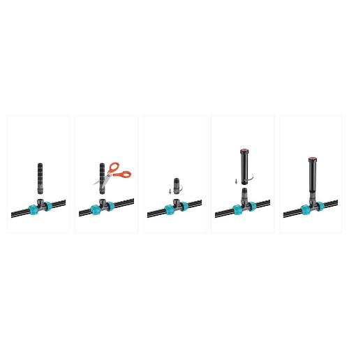 Per il montaggio degli irrigatori sulla tubazione in polietilene. Tagliabile per regolare l`altezza. Filettatura a staffa 3/4" e 1/2" per irrigatori
