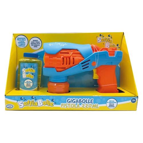 Da 220ml di soluzione per bolle giganti. Funzionamento con 3 batterie aa 1,5v (non incluse)