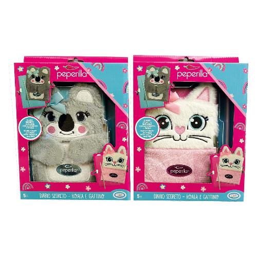 Cartoncino rigido con rivestimento peluche forma Koala o gattino assortito. Lucchetto metallo