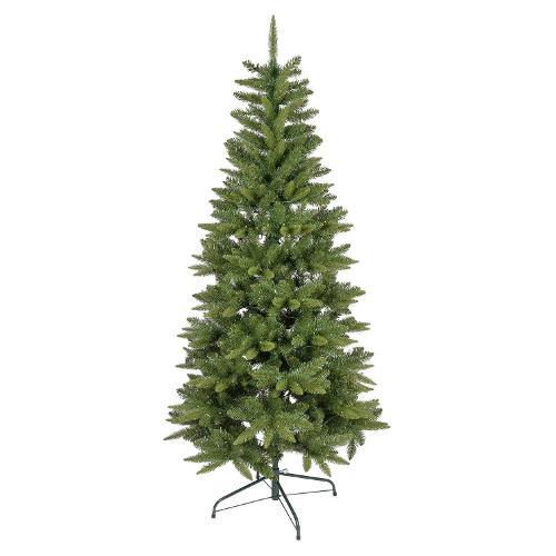 Abete slim prelit mod. Ls h180xø86 cm pvc+pe verde 300 led bianco caldo ø5mm reflex, rami mix di diversa forma e colore, 803 punte (165 pe), apertura hinged con rami snodabili non asportabili, piedistallo a croce richiudibile in metallo, memory controller luce fissa + 7 giochi luce + timer giornaliero 8 ore disinseribile con pulsante luminoso integrato nel trasf. Selv di sicurezza, ip44 esterno e interno, cavo di alimentazione verde 4m
