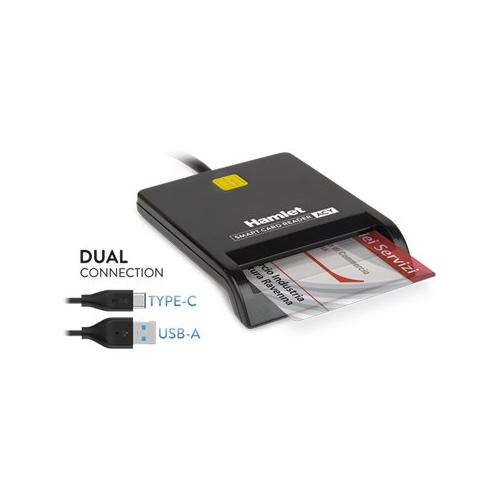 Hamlet HUSCR-ACY è un lettore di Smart Card che in combinazione con la Tessera Sanitaria (TS), la Carta Nazionale dei Servizi (CNS) o la Carta Regionale dei Servizi (CRS) consente di accedere in modo sicuro ai portali della Pubblica Amministrazione, come ad esempio l'INPS, l'Agenzia delle Entrate e il Fascicolo Sanitario Elettronico (FSE), per visualizzare e gestire i propri dati fiscali, ottenere certificati e documenti oppure consultare referti medici, prescrizioni ed eseguire prenotazioni per visite ed esami senza doversi recare fisicamente presso gli uffici. Compatibile con SPID (Sistema Pubblico di Identità Digitale).