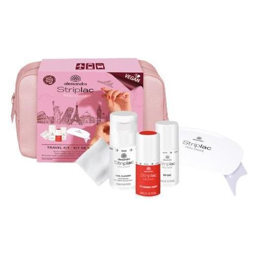 Kit da viaggio che contiene tutto il necessario per applicare semipermanente striplac. Il set contiene tutto il necessario per applicare striplac:1 lampada led portatile con cavo usb in dotazione con 6 led, 1 beauty bag, 1 colore striplac summer sunset da 3 ml, 1 striplac top coat trasparente 5 ml, 20 pads, 1 nail cleanser da 15 ml e 1 manuale di istruzioni.