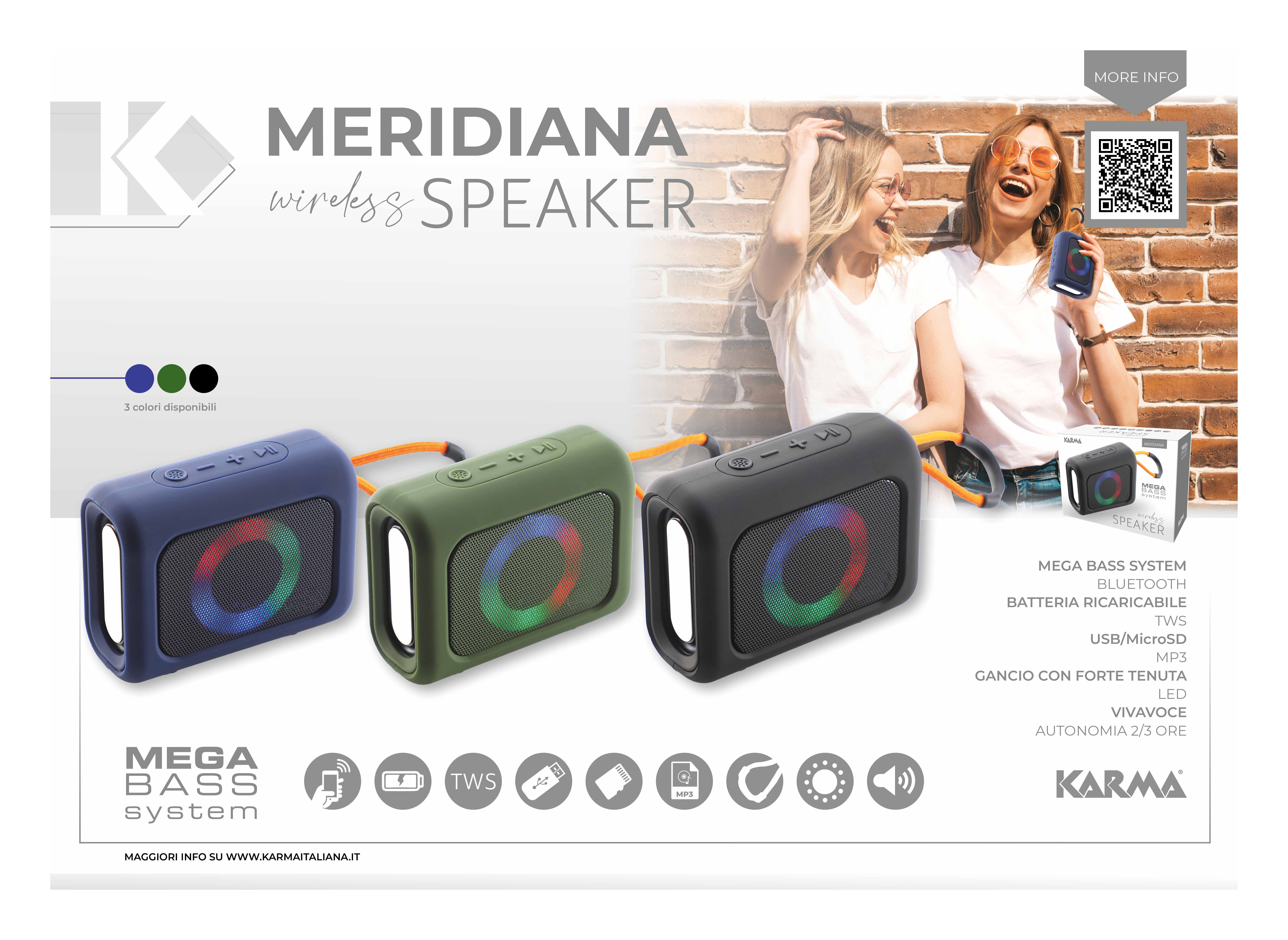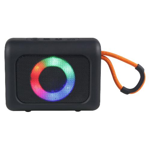 Il perfetto riproduttore di musica da portare ovunque. E' compatto, con batteria ricaricabile ed effetti luce attivabili a piacimento. E' in grado di leggere brani Mp3 da chiavette USB o schede microSD.