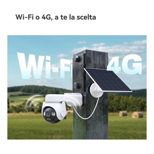 L'AOV PT è una telecamera di sorveglianza autonoma avanzata progettata per la massima flessibilità e sicurezza in luoghi esterni e remoti senza elettricità o connessione a Internet. La telecamera è anche Wifi quindi in modalità standard si può usare connessa alla rete Internet ed in caso di cattivo segnale o mancanza di connessione può passare al 4G per avere sempre tutto sotto controllo. La telecamera funziona con un pannello solare da 5 W e presenta una batteria integrata da 10.000 mAh, che le consente di funzionare in modo completamente indipendente da una fonte di alimentazione esterna.