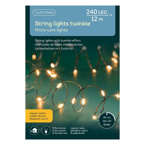 Filo Rame 240 luci - MICROLED Bianco caldo (12 + 5 mt) 8 Giochi di luce LUMINEO IP44 497116
