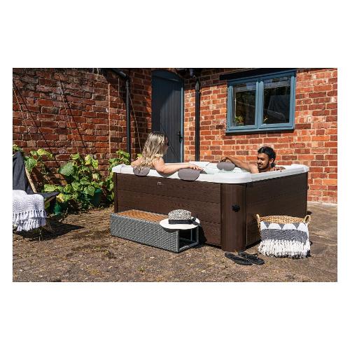 La nostra spa tribeca presenta un'elegante finitura color noce scuro. Questa splendida spa racchiude tutta la rigidità di una spa tradizionale senza rinunciare alla portabilità. Circondati di 360 gradi di bolle variabili per una sessione di relax immersiva. Per il massimo comfort, goditi i poggiatesta e i cuscini per la seduta inclusi. Tutti i comandi della tua spa in un'unica comoda unità! Controlla facilmente la tua spa dal tuo centro di controllo facile da usare. La nostra nuovissima scatola di controllo all-in-one è ora dotata di una copertura protettiva per proteggerti dagli elementi esterni aggressivi come la luce solare diretta e le condizioni meteorologiche estreme.