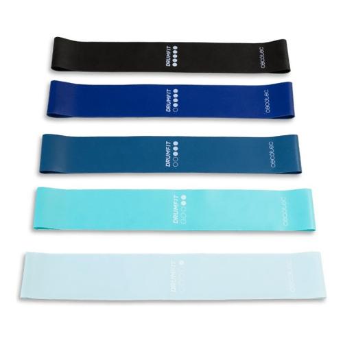 Set di 5 bande elastiche di resistenza in lattice con diversi livelli e sacchetto di trasporto inclusa.