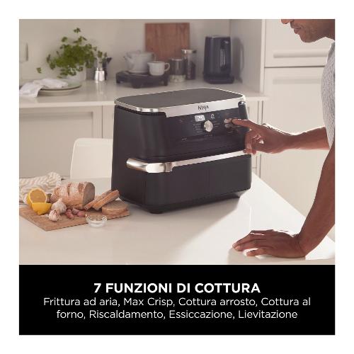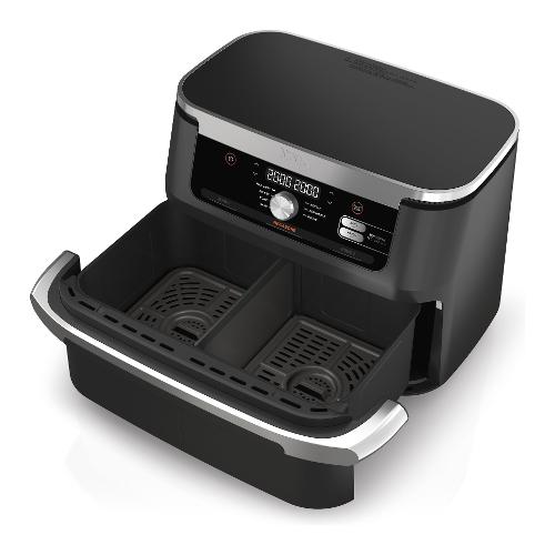 È arrivata Ninja FlexDrawer, la friggitrice ad aria extra large che si adatta a qualsiasi formato. Cuoci alimenti di grandi dimensioni nella MegaZone da 10,4 l oppure utilizza il divisorio per creare 2 zone di cottura indipendenti e combinare a piacimento le funzioni di cottura grazie alla tecnologia Dual Zone di Ninja.