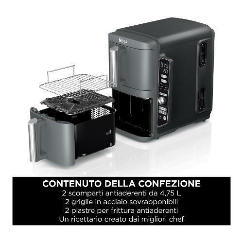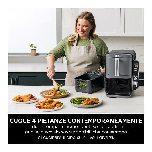 Sbizzarrisciti con ricette personalizzate grazie ai 6 programmi di cottura: imposta tempi e temperature diversi nei 2 scomparti regolabili autonomamente e prepara piatti completi da servire caldi, anche con poco spazio in cucina!