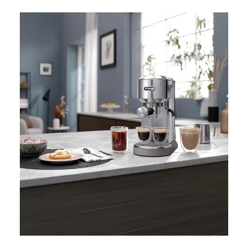 Un caffè buono come quello del bar con la gestualità del barista, con la Dedica Duo crea la bevanda a seconda dei tuoi gusti. Un prodotto ultracompatto 14,9cm che ti permetterà di portare a casa la qualità del caffe del bar e non solo. Grazie alla lancia vapore MyLatte Art potrai creare soffici creme di latte e vivere ogni volta che vuoi la magia di creare bevande uniche con la tecnica della Latte Art. Tra le opzioni disponibili, anche il Cold Brew pronto in meno di 5 minuti.