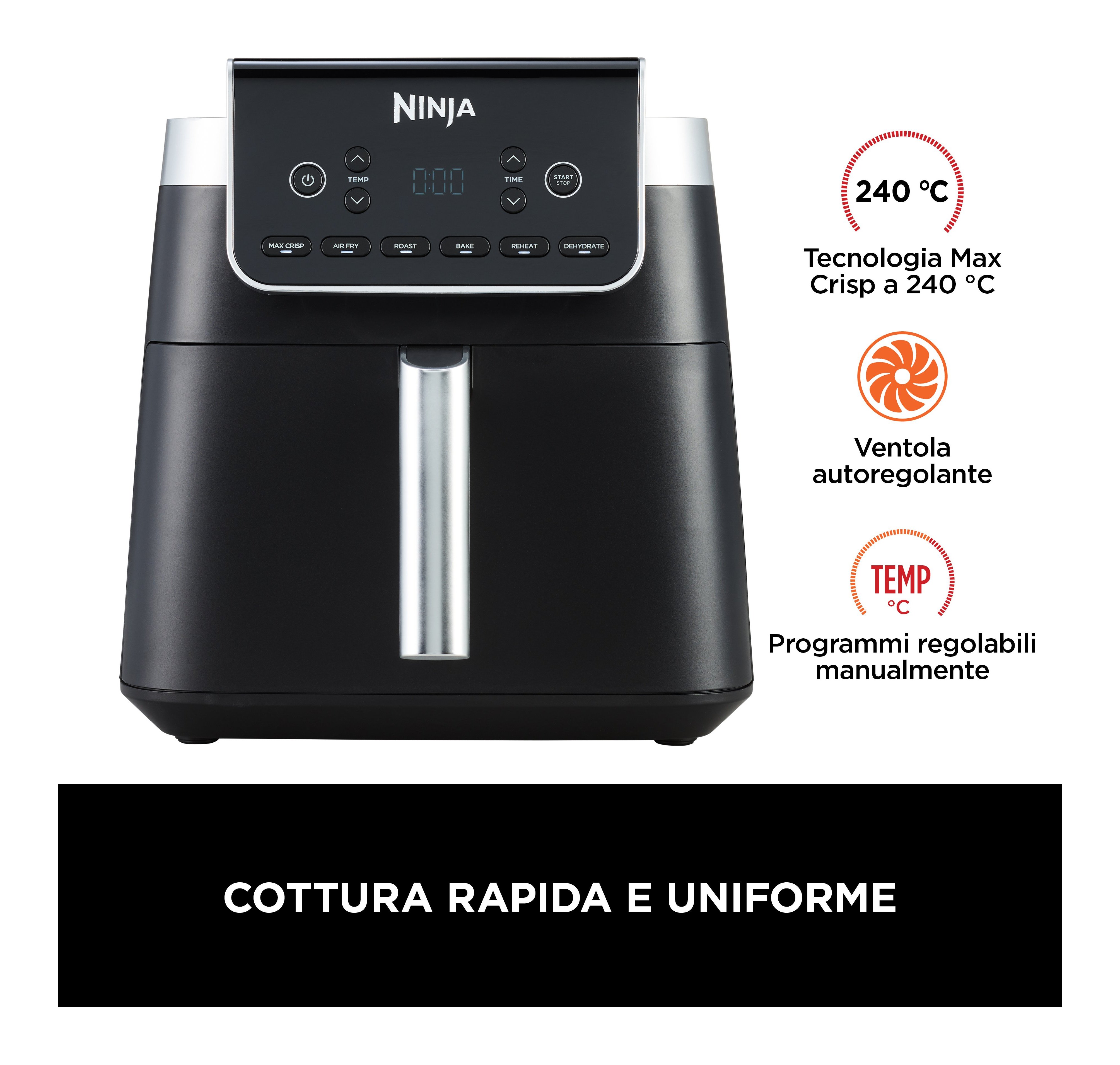 Friggitrice ad aria (6in1) 2000W (6,2Lt) AIR FRYER Max Pro Black AF180EU
