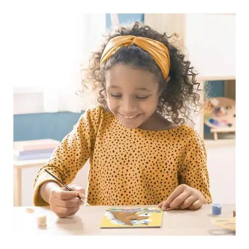 Con creart i bambini dipingono attraverso una tavola prestampata, seguendo i numeri e i bordi colorati riescono a riempire gli spazi con i colori corrispondenti e realizzare la loro opera d’arte. I colori a base d'acqua sono pronti per l'uso e non necessitano alcun solvente. I barattoli di colori sono richiudibili singolarmente per evitare che si secchino. Per facilitare l'attività, viene fornito una tavolozza di cartone dove inserire i barattolini per evitare che si rovescino. Ogni confezione contiene tutto il necessario per dipingere un bellissimo quadro e una cornice per poter appendere il proprio lavoro una volta terminato il lavoro. Atttività rilassante che esercita la manualità fine e la concentrazione e garantisce un risultato impeccabile, che da grande soddisfazione a tutti i piccoli artisti!