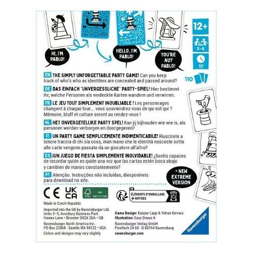 Questo gioco di società "indimenticabile" e ingegnosamente semplice mostra in modo sorprendente e divertente quanto sia facile confondere il nostro cervello. Appena avuto nella testa e già se ne è andato di nuovo, allora si chiama bene bluffare e incoraggiare gli altri il regalo in modo convincente. In questa nuova versione "incognito" puoi pensare a te stesso come qualsiasi personaggio che ti venga in mente per l'immagine sulla mappa. Voi vi date le carte a vicenda e cercate di ricordare chi ha appena avuto un po'. Novità da incognito: quando si passa la carta, è possibile nominarla secondo un carattere che si adatta a piacere: "ciao, sono superman." Se un giocatore non sa esattamente quale regalo è presumibilmente davanti a lui, deve essere bluffato in modo convincente. Il gioco termina non appena qualcuno ha 3 carte nella pila degli scarti personali. Ogni carta nella tua pila conta un aspetto negativo. Chi ha raccolto il minor numero di svantaggi vince la partita!