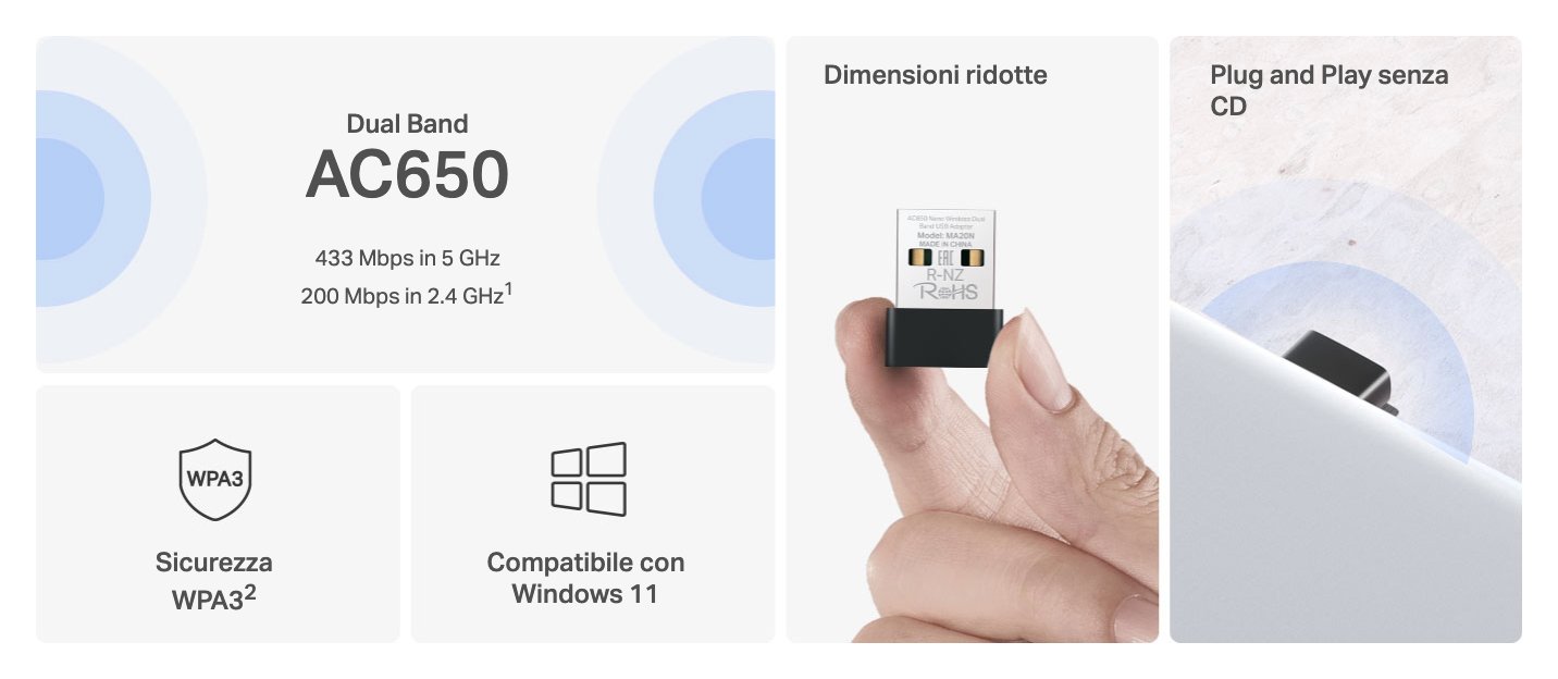 Adattatore AC650 Dual Band Black MA20N