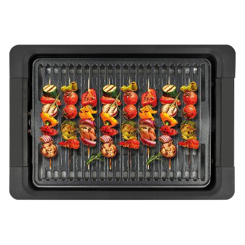 Con il barbecue Tito potrete soddisfare la vostra voglia di grigliare tutto l’anno: che sia carne, pesce o verdure, con questo barbecue elettrico otterrete sempre ottimi risultati. L’ampia superficie di cottura da 35.6 x 25.5cm consente di cucinare per tutta la famiglia, la resistenza annegata nella piastra garantisce una cottura senza fumi e cattivi odori ed una perfetta distribuzione del calore, e con l’aiuto del termostato regolabile potrete adattare la temperatura ad ogni alimento. Inoltre la pulizia è molto semplice: l’unità è completamente smontabile, i grassi vengono raccolti nell’apposito contenitore e la piastra è in materiale antiaderente facilmente lavabile.