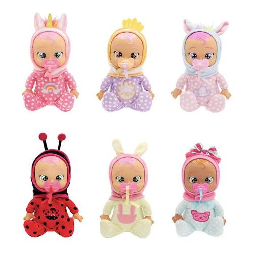 I cry babies tiny cuddles newborn sono morbidosi! Possono stare seduti da soli ed indossano una tutina da neonato, con una copertina personalizzata e un ciuccio abbinato. Ci sono 6 morbidi bambolotti da collezionare, ognuno ispirato ad un animaletto diverso. Piangono tutti lacrime vere quando premi loro la testa!