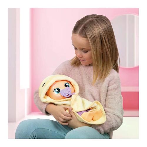 Le cry babies battime zoe e dana sono le bambole per il bagnetto! Sono appena nate, super morbide ed impermeabili, per essere appunto immerse in acqua. Indossano un pigiamino personalizzato e sono pronte per giocare e godersi il momento del bagno. Quando si bagnano, emettono suoni di bambino come balbettii, risatine e talvolta piangono. Ognuna include un asciugamano personalizzato per avvolgerla dopo il bagnetto e un ciuccio coordinato. Quando rimuovi il ciuccio, inizieranno a