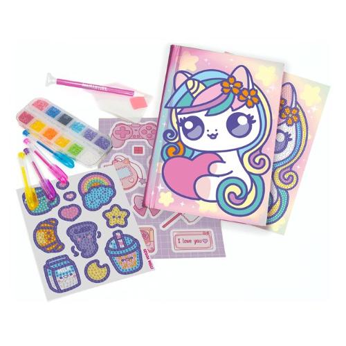 Diario unicorno con copertina da decorare con le gemme. Contiene: diario, gemme colorate, istruzi-