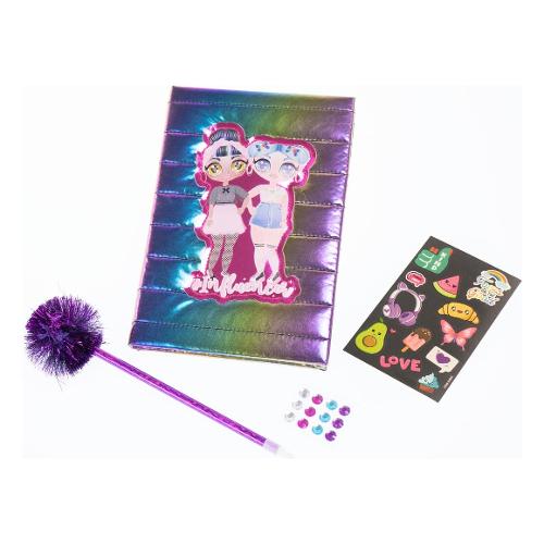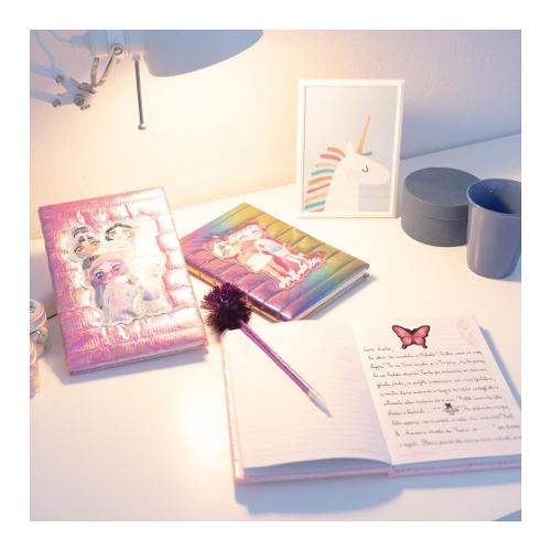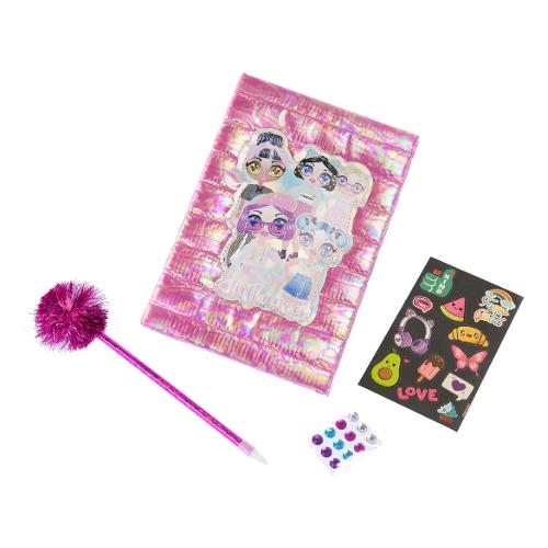 Un set irresistibile per chi vuole tenere un diario, disegnare, scrivere i propri pensieri. Include un diario, un foglio di gemme adesive, stickers e una simpatica matita con pom pom!