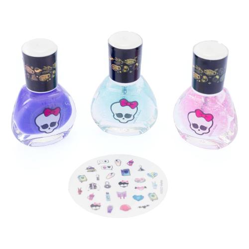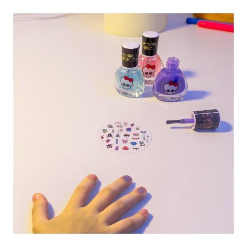 Colora le tue unghie con le tonalità di monster high e arricchiscile con i simpatici stickers a tema. la confezione include 3 smalti per unghie e 1 goflietto di stickers