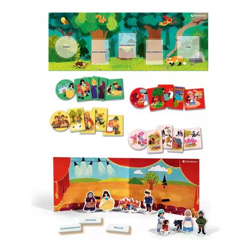 Il gioco perfetto per i piccoli narratori che potranno ricostruire le fiabe, conoscere la struttura narrativa e le basi del teatro e imparare a raccontare tante storie.