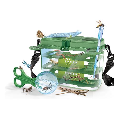Un kit completo per creare un vero e proprio habitat per gli insetti, da portare sempre con se per scoprire il loro mondo e osservare le loro abitudini. Il kit include la casa degli insetti da assemblare con una cinghia e un pratico strumento acchiappa-insetti per poterli catturare e metetterli nel fauna box in totale sicurezza. Il manuale in dotazione contiene inoltre tante curiosità sul mondo di questi piccoli animali