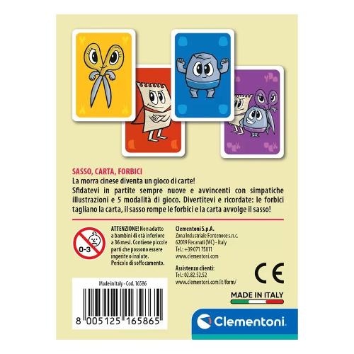 Il popolare gioco per bambini in una veste tutta nuova. Ingaggianti sfide a Sasso, Carta, Forbici con carte illustrate. Un gioco adatto a tutta la famiglia con diverse modalità di gioco. Il pratico formato permette di portare il gioco ovunque. Made in italy