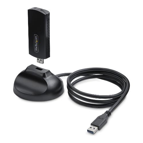 Questo adattatore di rete USB Wi-Fi 6E si collega al computer desktop o portatile potenziandone le capacità e consente una comunicazione wireless ad alta velocità e a bassa latenza nella banda 6GHz con velocità combinate tri-band fino a 5400 Mbps.