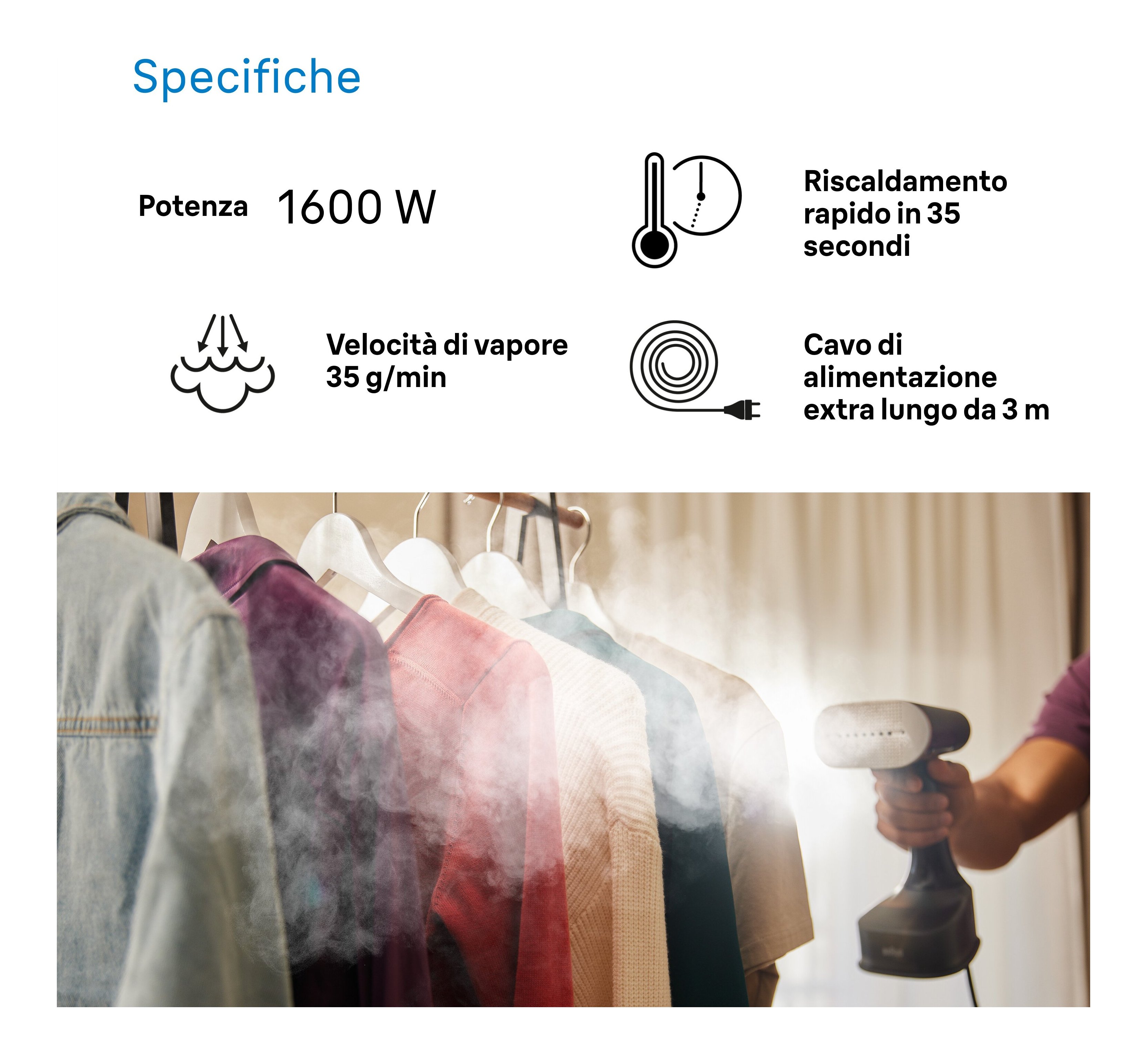 Quando si tratta di risultati eccellenti e rapidi, QuickStyle 7 è dotato della tecnologia FastSteam per prestazioni di altissimo livello con 1600 watt di potenza e fino a 35 g/min di vapore continuo per una rimozione rapida e potente delle pieghe. E per risultati ancora più rapidi, la piastra si riscalda e permette di rinfrescare il tuo outfit in meno di un minuto. Dotato del nuovo sistema ActiClean Easy, offre una pulizia rapida e semplice per risultati duraturi. E’ inoltre integrata l’iCare Tecnology per proteggere i capi da eventuali bruciature o danni durante l’erogazione del vapore.