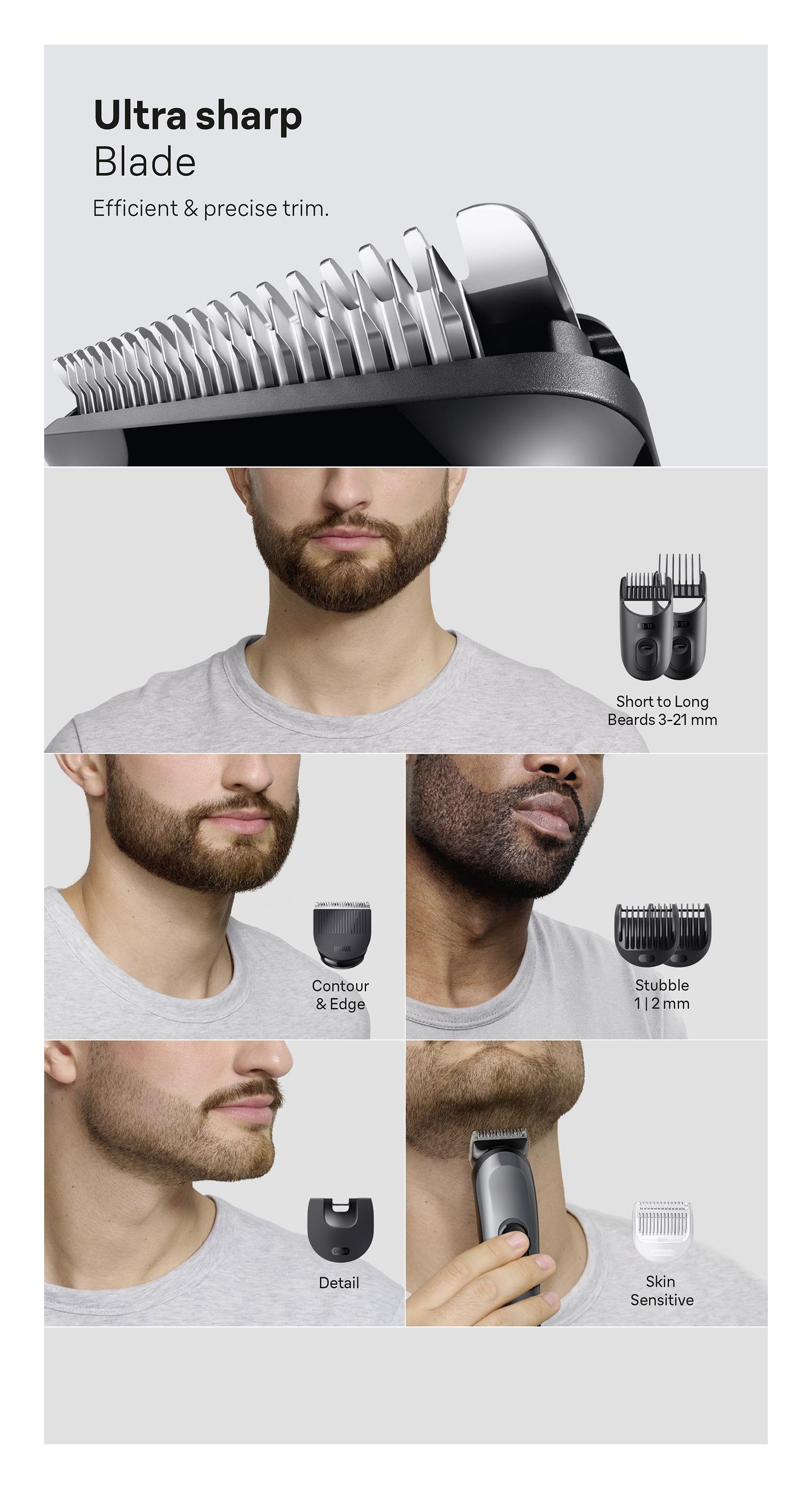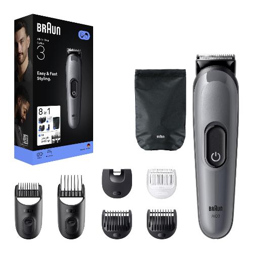 Il rifinitore All-in-One nero Braun AIO3540 ti regala un'esperienza di rasatura completa. Questo versatile dispositivo è adatto sia per la rasatura dei capelli che per la cura della barba e dei peli del corpo, grazie alle 14 impostazioni di rasatura. Regolazione altezza taglio da 0,5 a 21mm