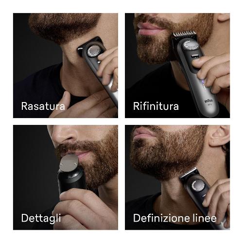 Precisione professionale e controllo al 100%: il miglior regolabarba Braun, Series 9, ti consente di rifinire, radere e definire i contorni e i dettagli con accessori professionali premium per linee perfette, sfumature pulite e rifiniture uniformi. Regolazione altezza taglio da 0,5 a 20mm