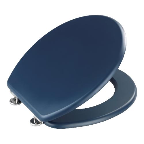 Sedile wc con raffinata finitura opaca con verniciatura a più strati resistente all'umidità e cerniere in acciaio inox. Adatto anche ai water con vaschetta esterna. Incluso paracolpi.