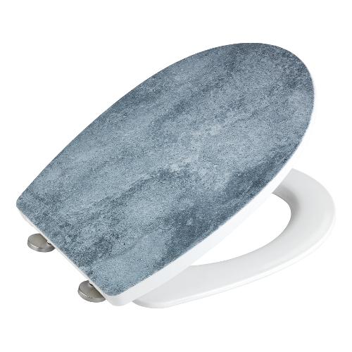 Sedile wc in robusta termoplastica con decoro in rilievo. Con pulsante fix-clip per facilitare la pulizia e inserto gommato antiscivolo che evita ogni movimento del sedile sulla tazza del wc. Cerniere in acciaio inossidabile con chiusura ammortizzata automatica easy-close. Incluso paracolpi. La seduta wc ha una portata fino a 350 kg.