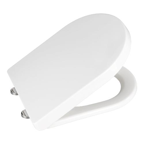 Sedile wc con pulsante fix-clip per facilitare la pulizia e inserto gommato antiscivolo che evita ogni movimento del sedile sulla tazza del wc. Cerniere in acciaio inossidabile con chiusura ammortizzata automatica easy-close. Incluso paracolpi.