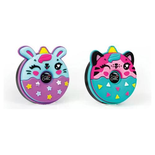 Un mini cofanetto make up e a forme di dolce ciambella, dal Formato compact per essere portato sempre con sé. Il cofanetto è composto da due ombretti e un applicatore La dolce ciambella ha il corno multicolor che caratterizza la Linea lovely della collezione crazy chic. Da collezionare!