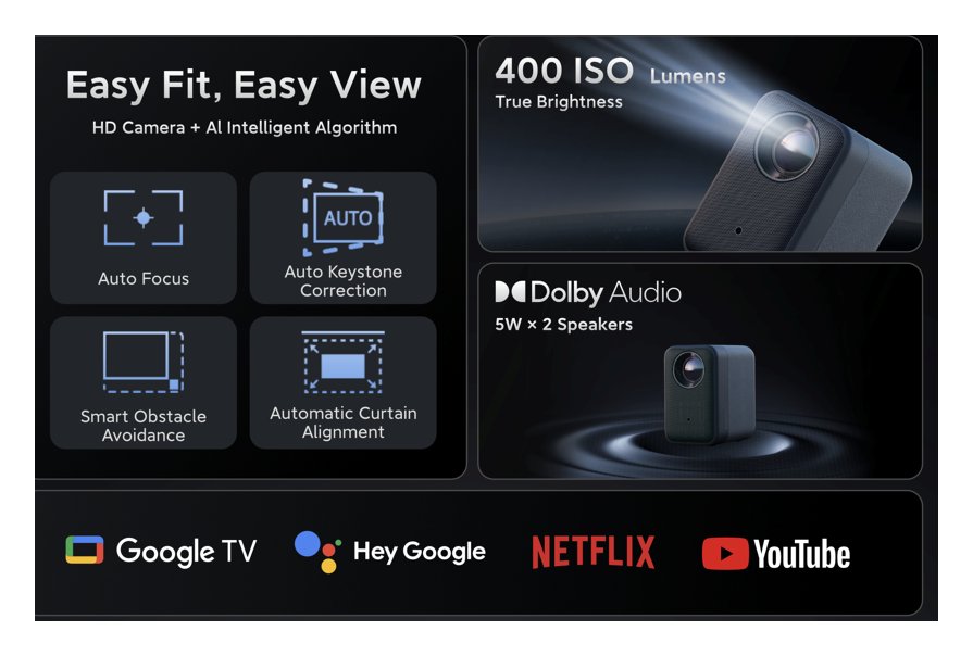 Con un design raffinato, degno di un'opera d'arte, il proiettore è una splendida aggiunta al tuo spazio.