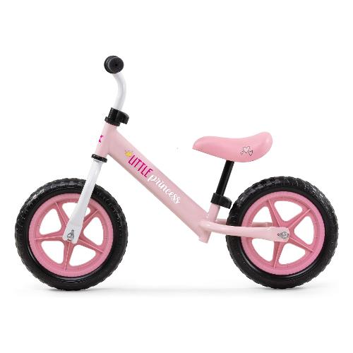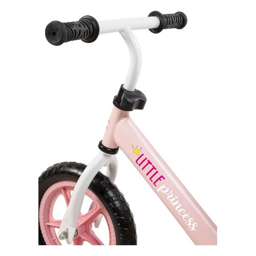 Telaio estremamente leggero, così il bambino può facilmente guidarlo spingendolo con i piedi; sedile confortevole e regolabile in altezza con ruote da 12”. La barra dello sterzo è regolabile in altezza e dotata di impugnature in gomma antiscivolo.