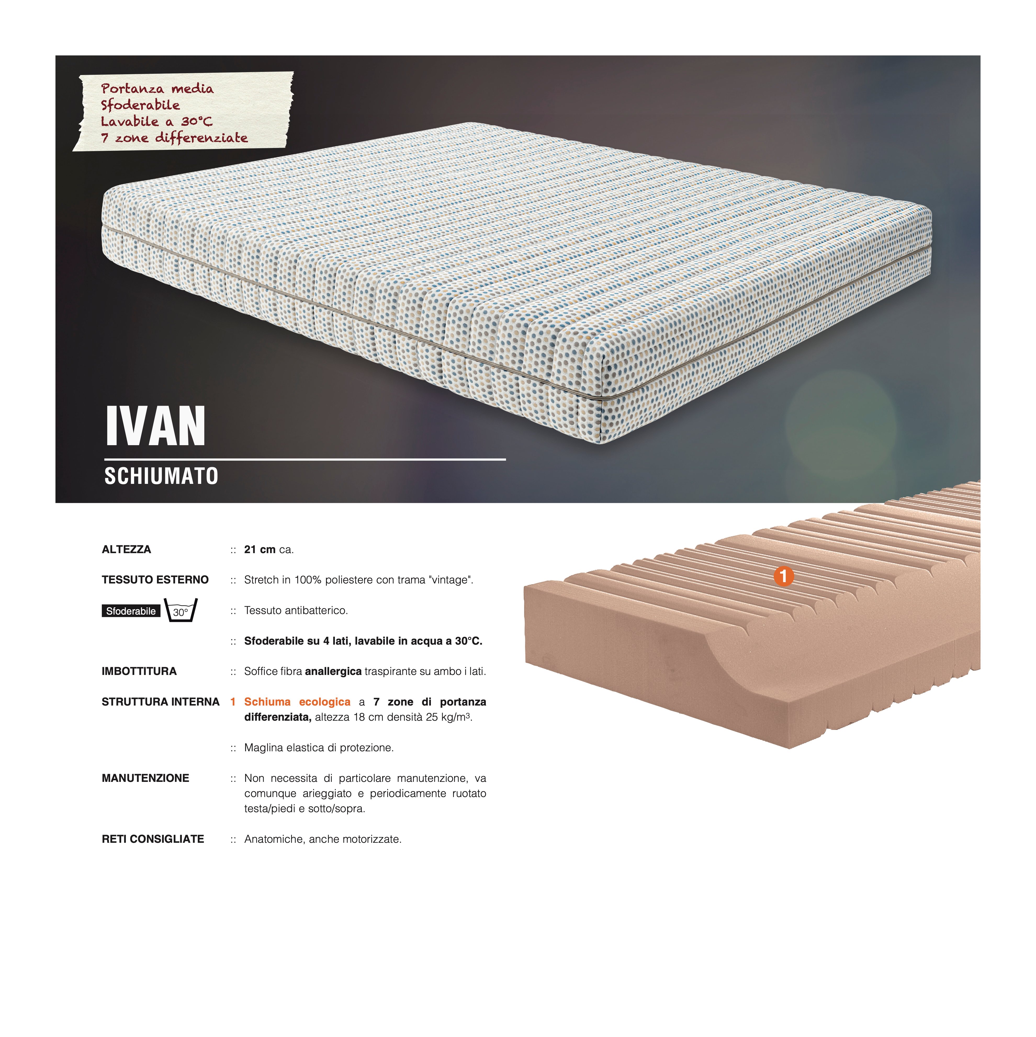 Portanza media. Sfoderabile e lavabile a 30°C. 7 zone differenziate