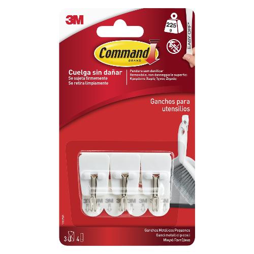 I ganci metallici piccoli command™ sono la nostra soluzione innovativa per appendere utensili, calendari e altri oggetti leggeri in modo sicuro e senza danni. Si fissano saldamente e si rimuovono senza lasciare residui grazie alla tecnologia a rilascio elastico 3M.
