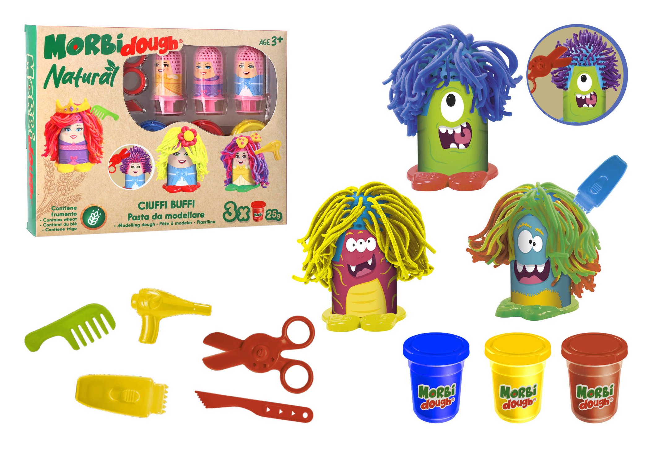 Pasta modellabile Ciuffi Buffi 3 vasetti 25 gr e accessori MORBIDOUGH NATURAL 42638