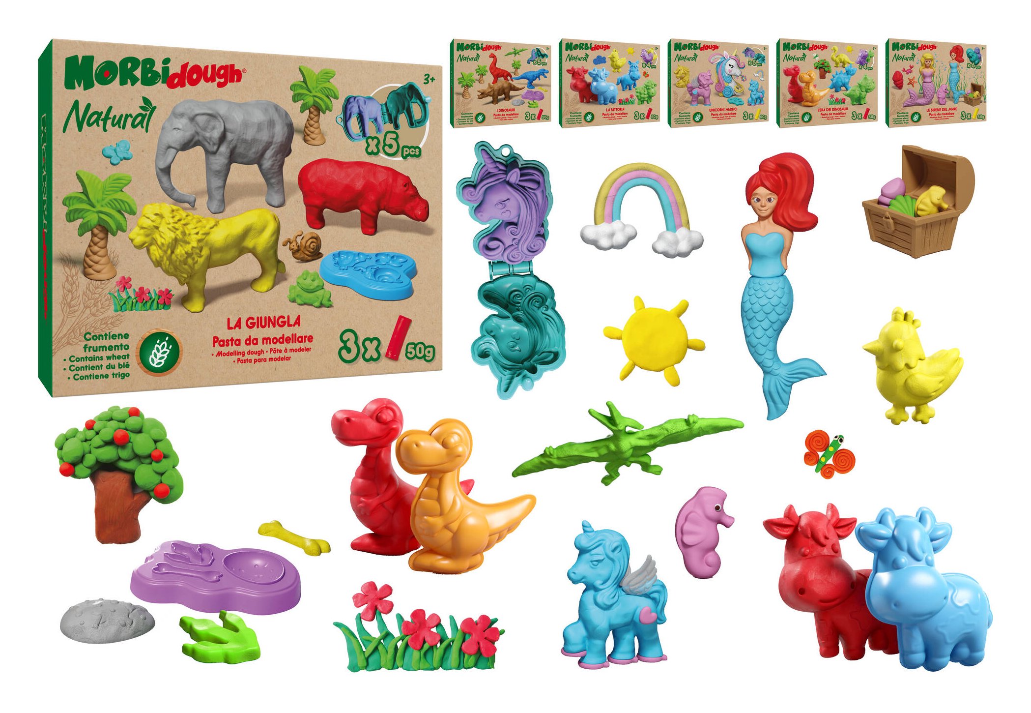 Pasta modellabile La Giungla 3 vasetti 50 gr e accessori MORBIDOUGH NATURAL 42901
